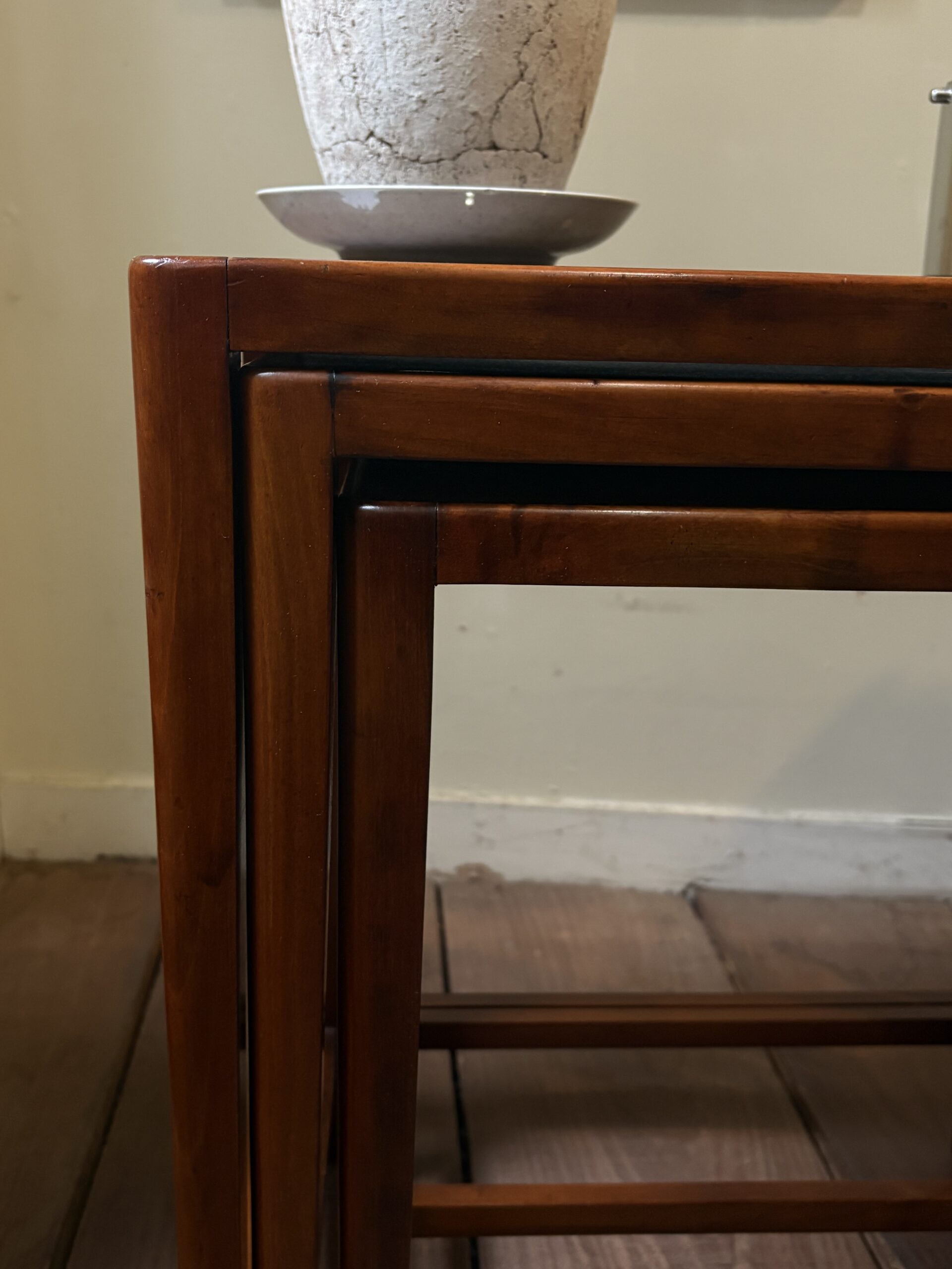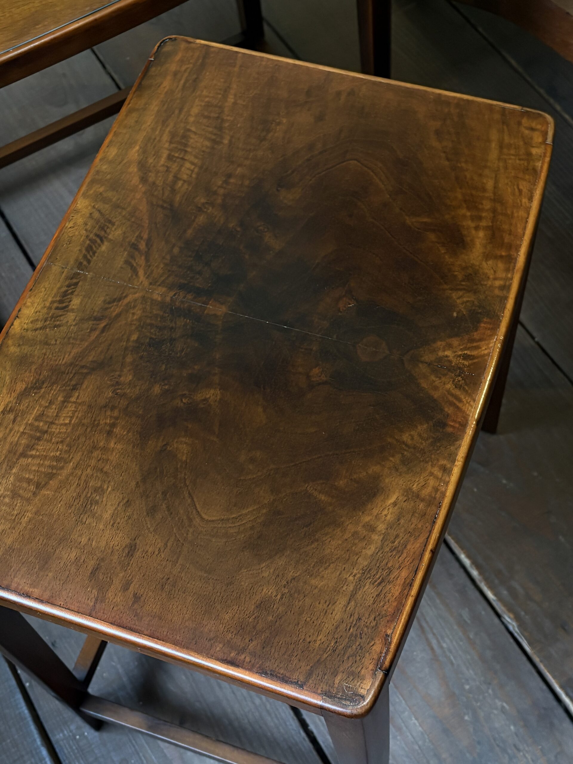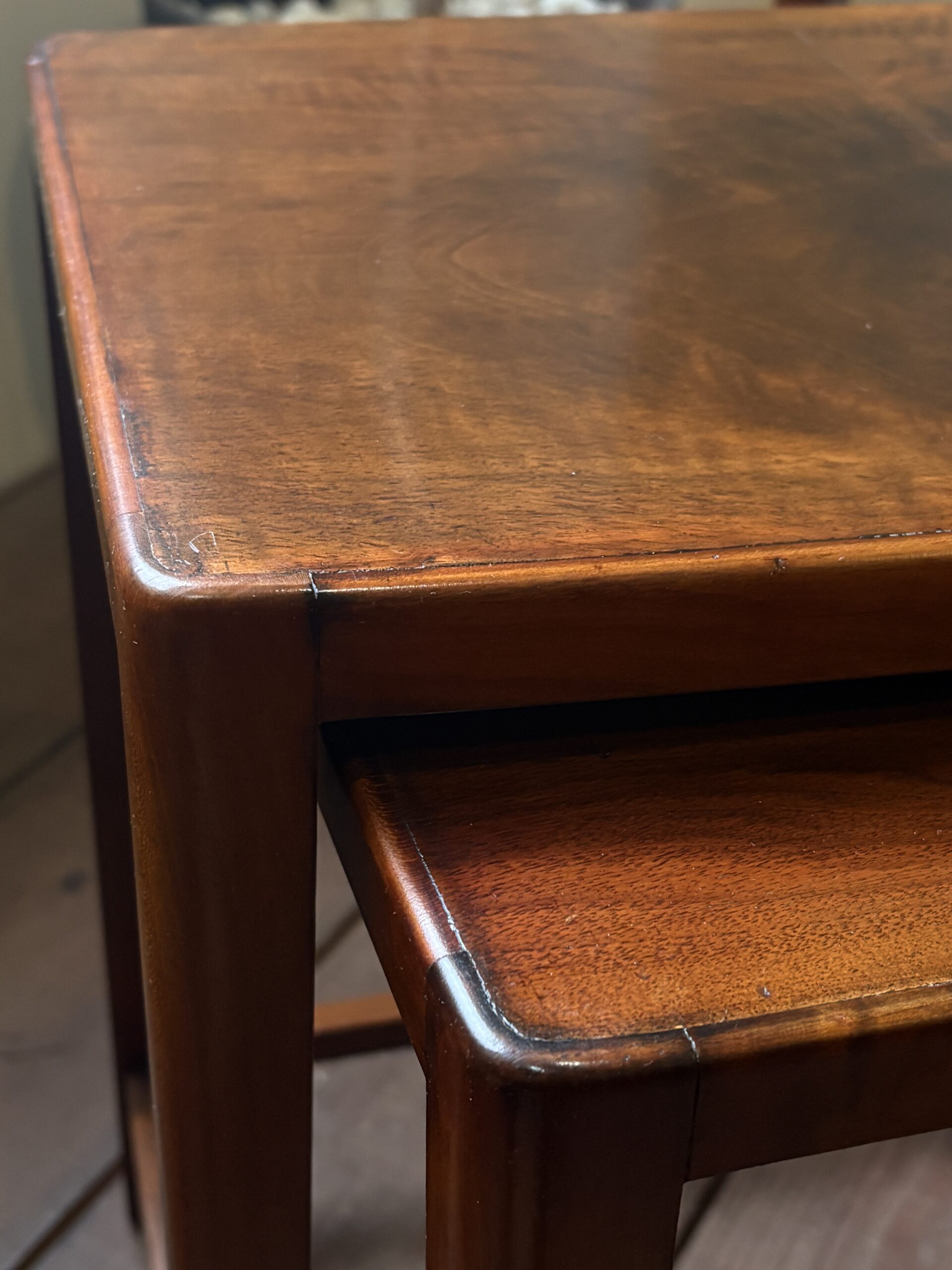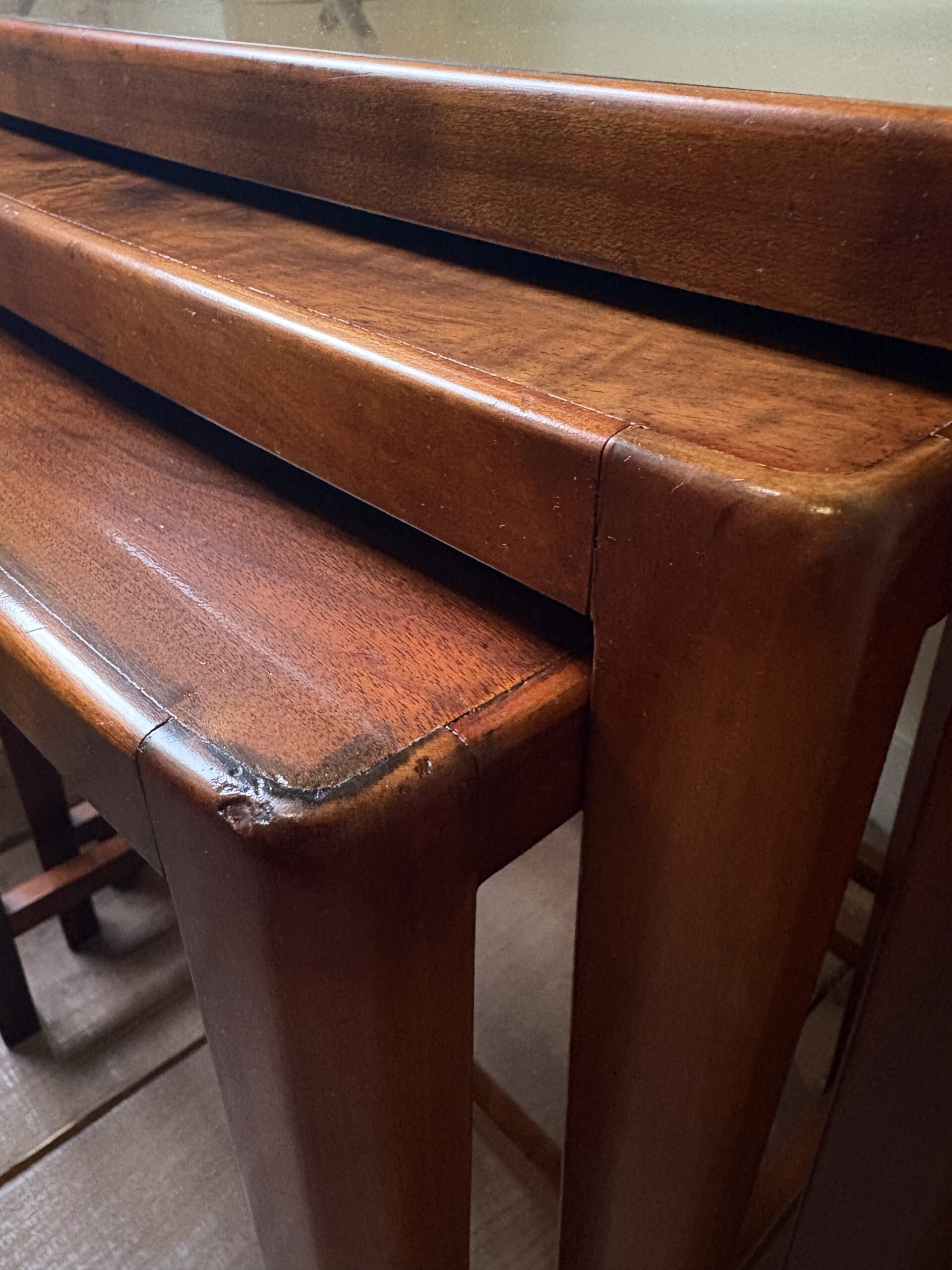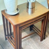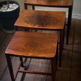 細身できれいな佇まいで、マホガニーの木目が美しいネストテーブルです。