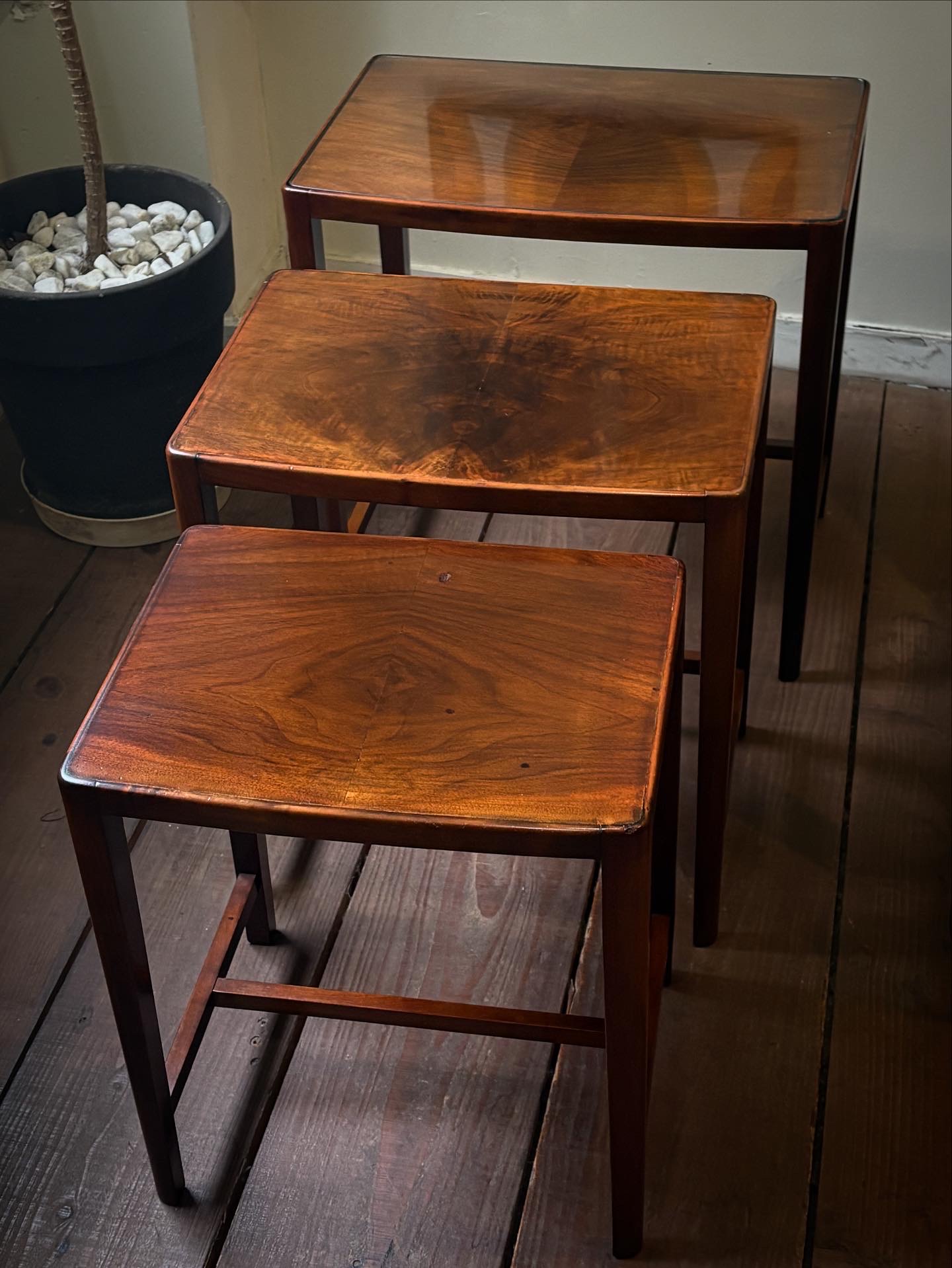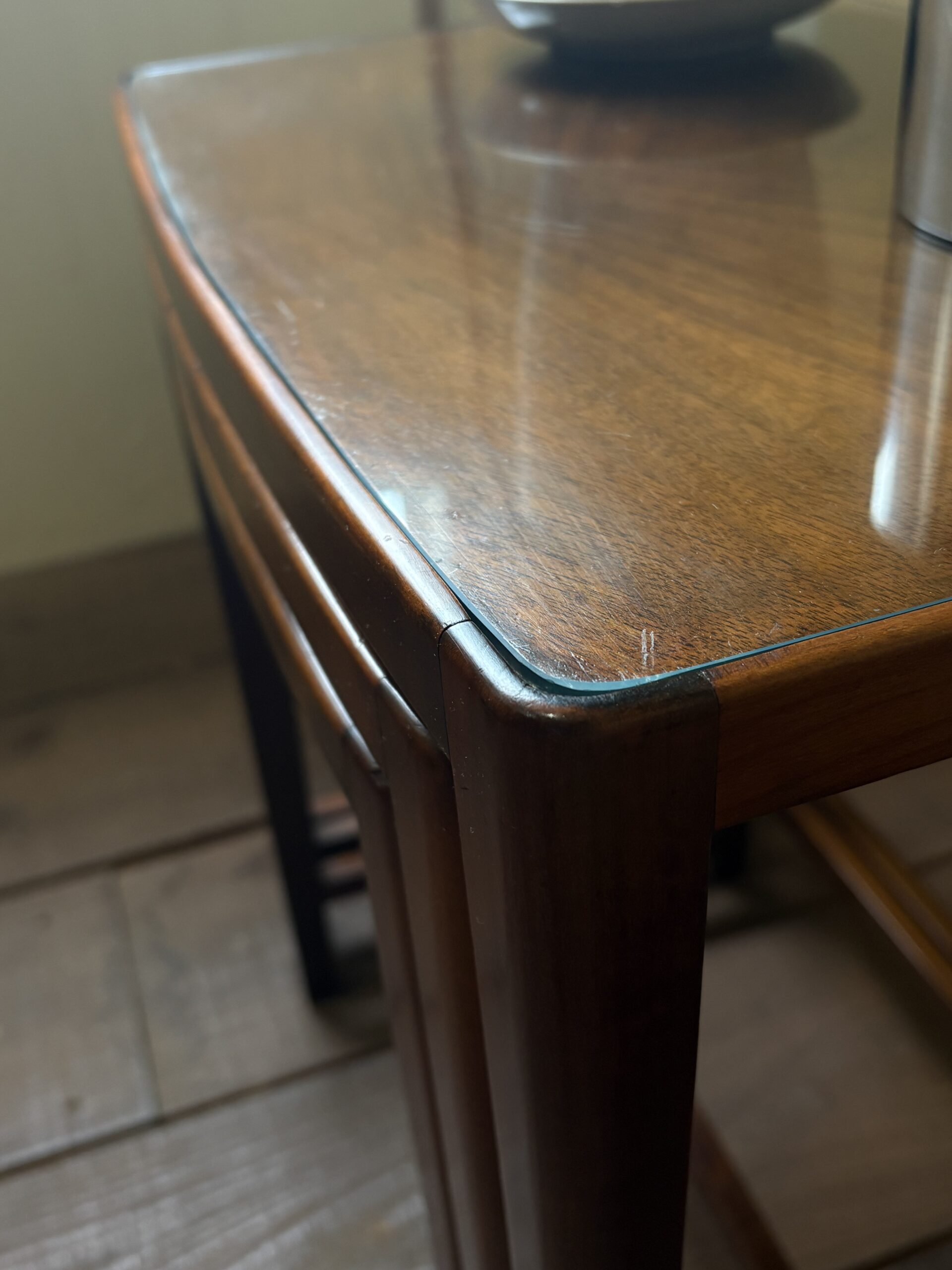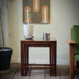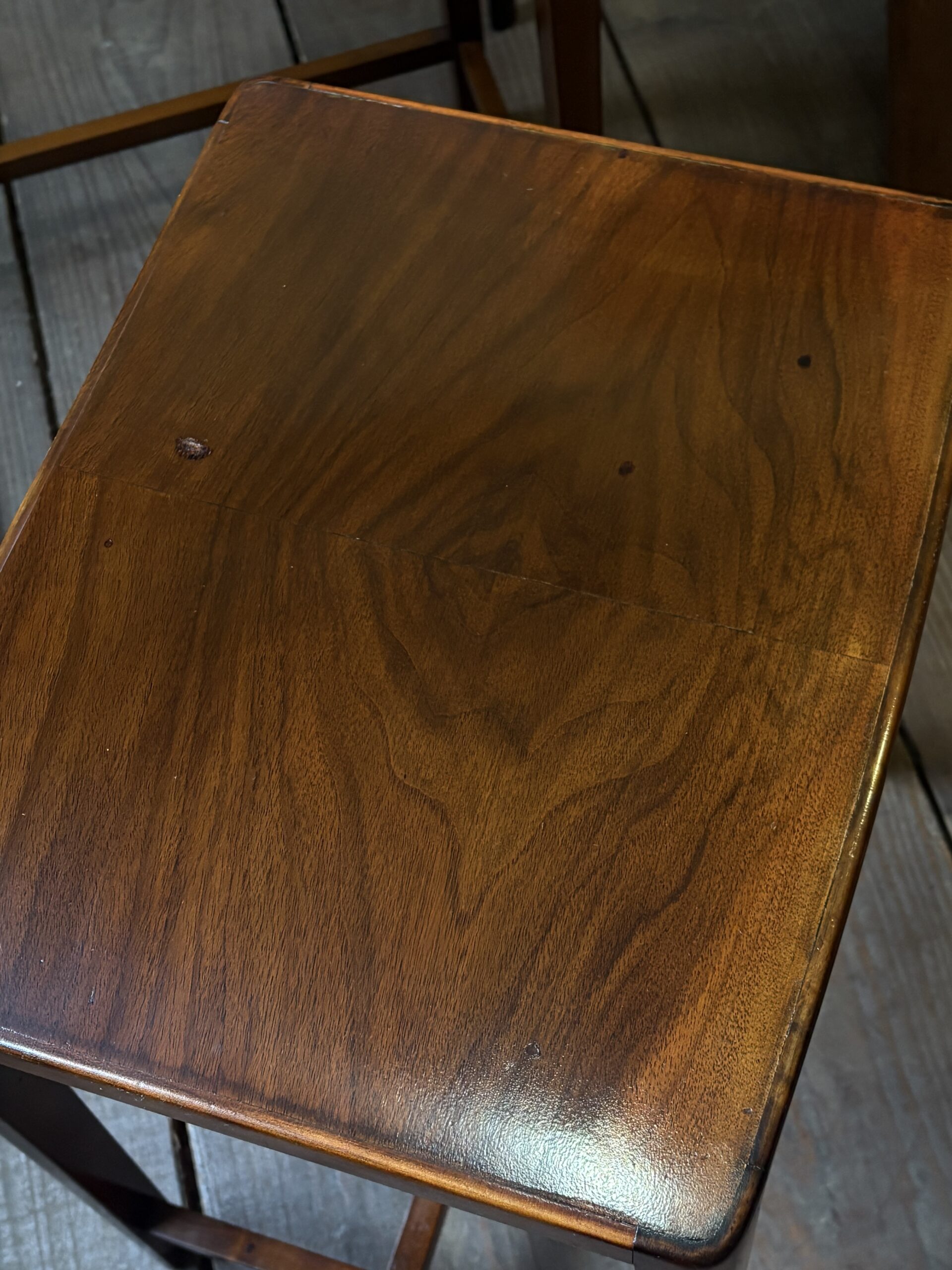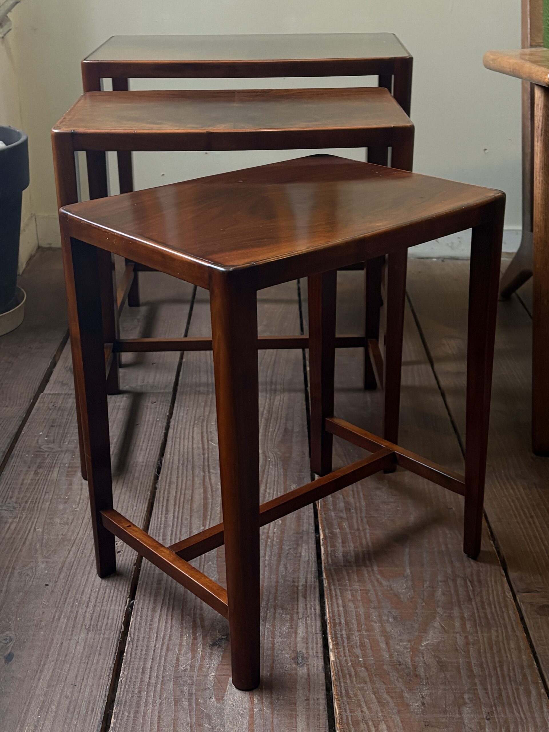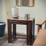 細身できれいな佇まいで、マホガニーの木目が美しいネストテーブルです。