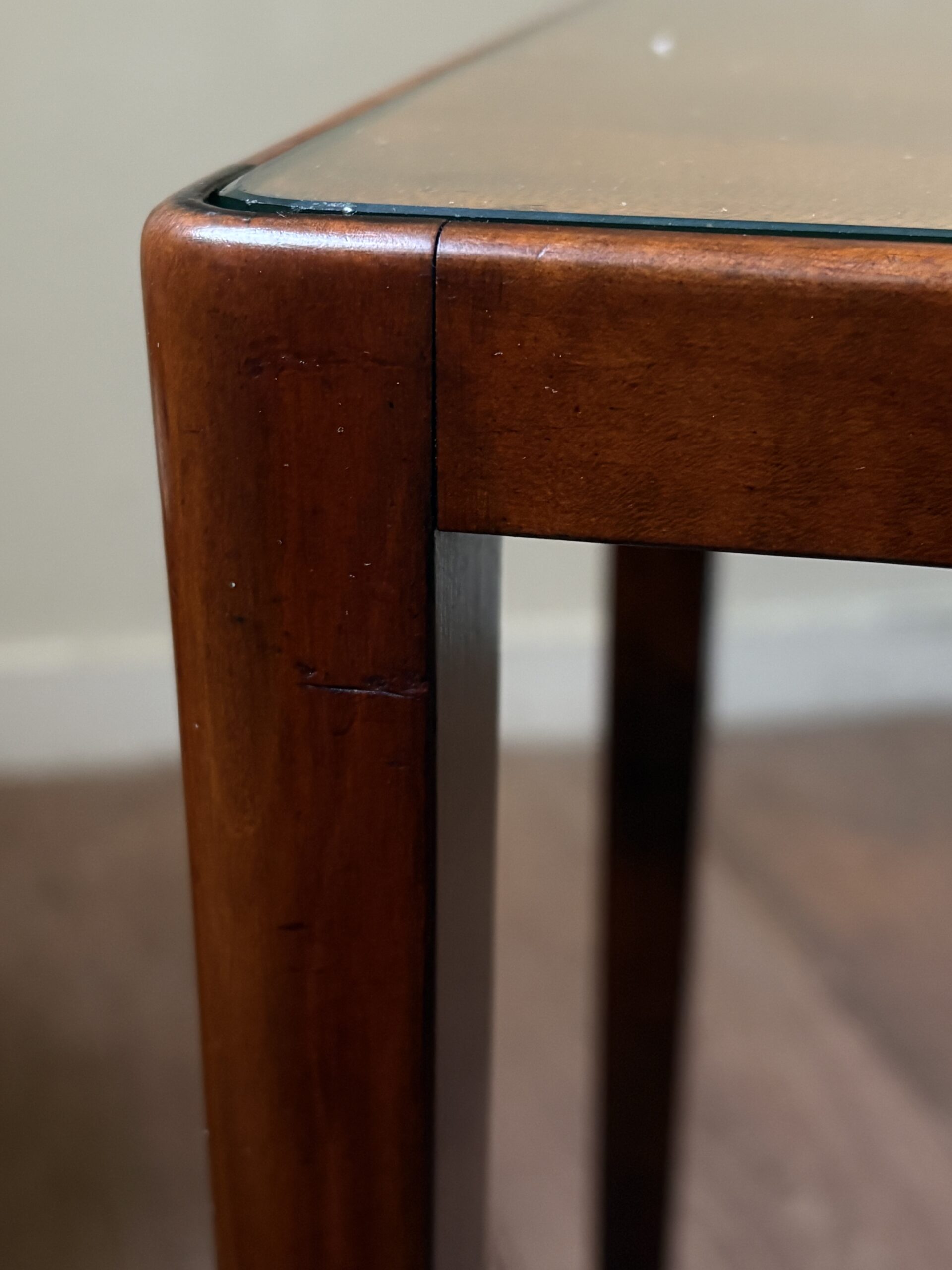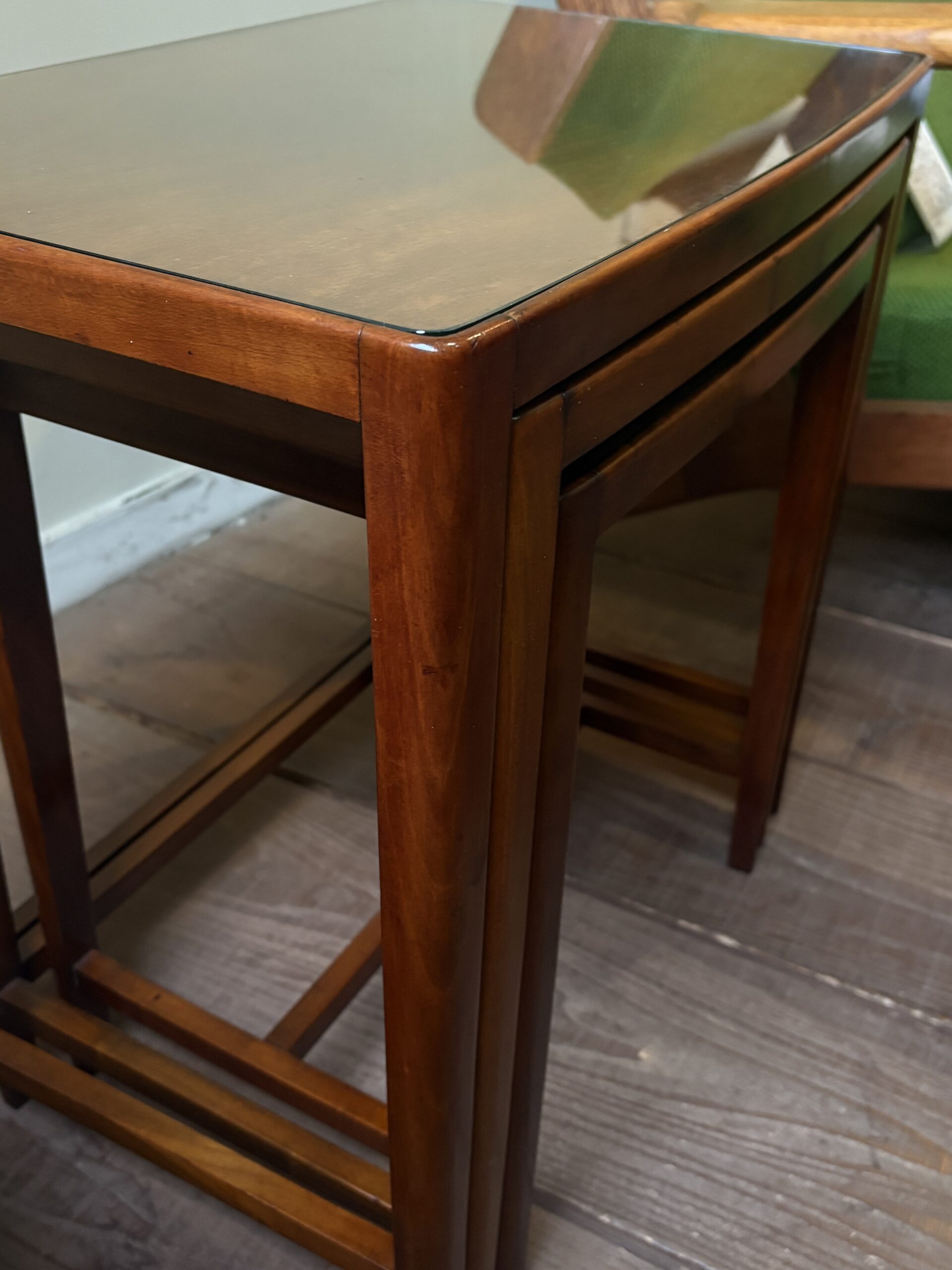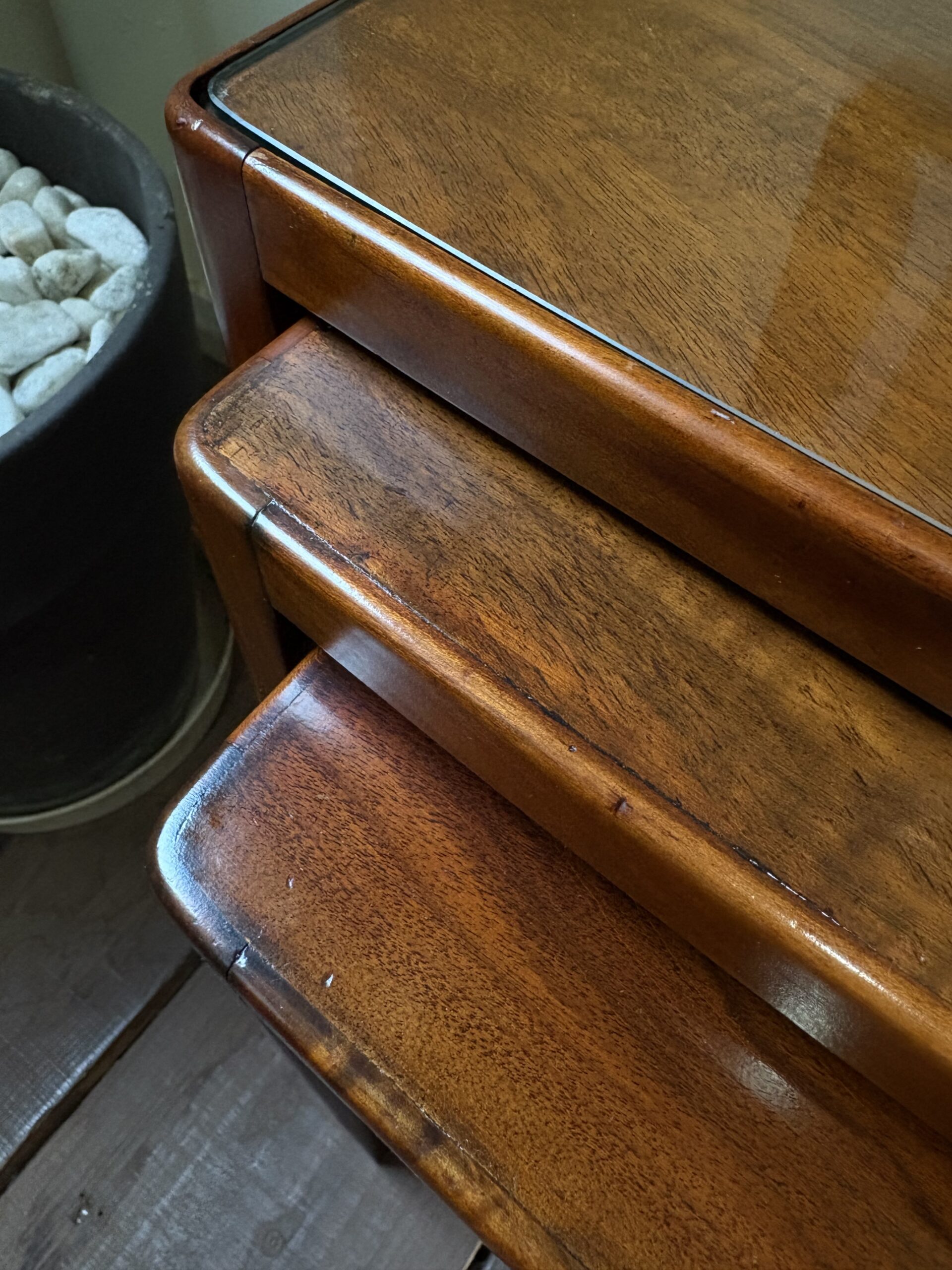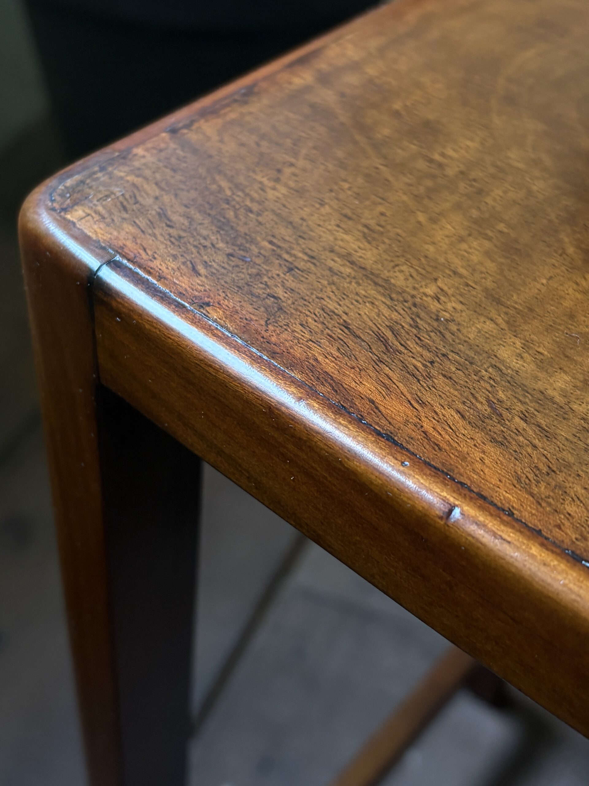 細身できれいな佇まいで、マホガニーの木目が美しいネストテーブルです。