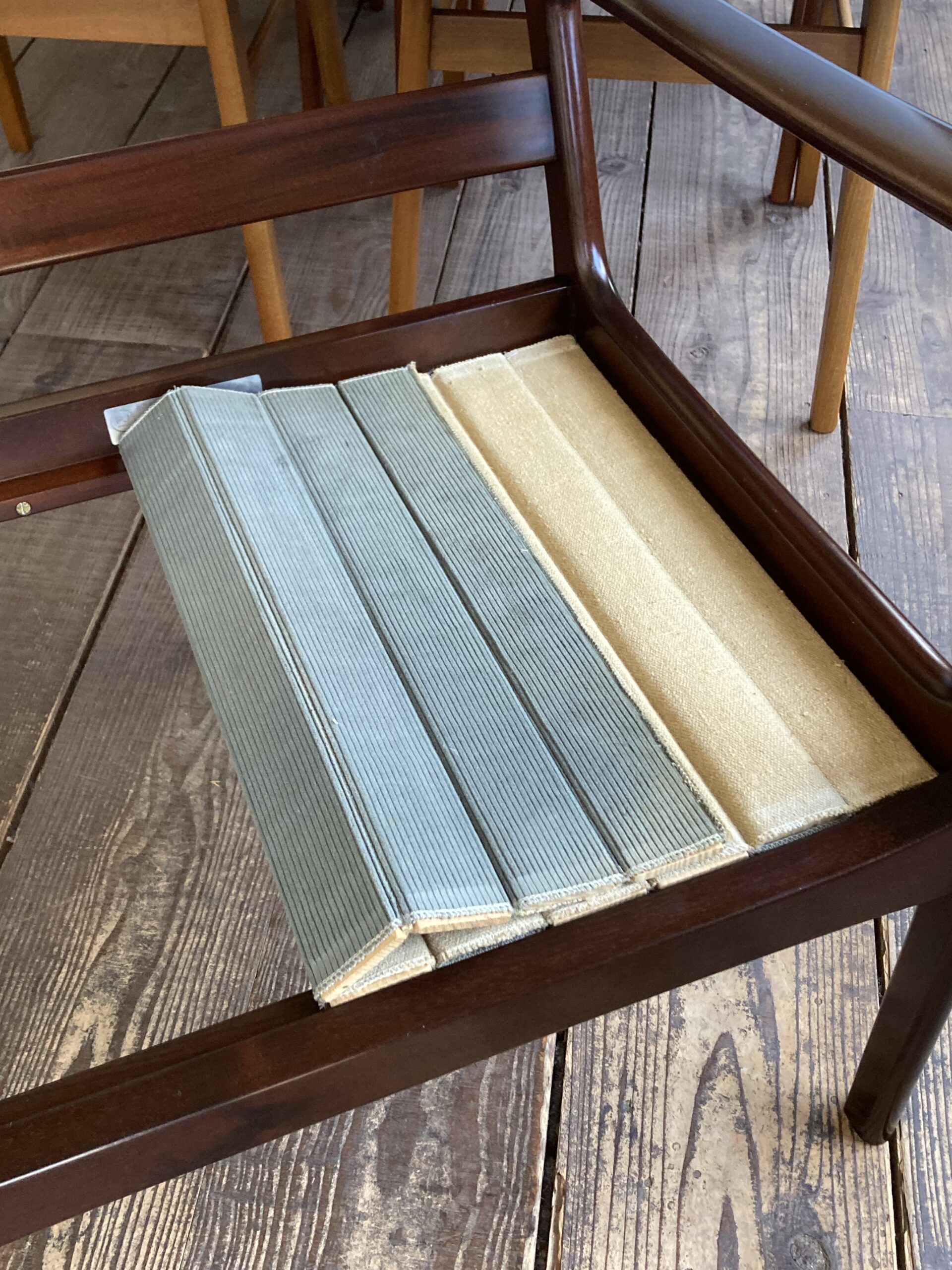 生地は肌触りが心地よくきれいな色合いのKvadoratのMelange napで張り替えました。